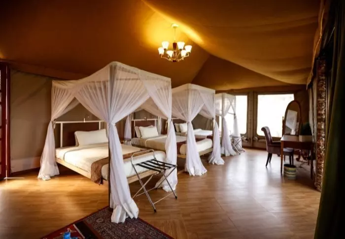 Ngorongoro Wild Camp består af 20 store telte med fuld højde og fast gulv. Teltene er bygget på pæle, hvilket giver den mest fantastiske udsigt over området fra terrassen foran selve teltet. Alle teltene er med eget stort badeværelse bygget i klinker og fliser. Her er rindende vand, toilet og bruser.