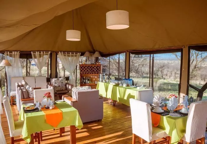 Campen er en klassisk afrikansk safaricamp, hvor det er naturen, som er i højsædet. De vilde dyr kommer ofte på besøg om natten, og du kan forvente at se både gazeller, antiloper, zebraer og til tider elefanter og hyæner omkring campen.
