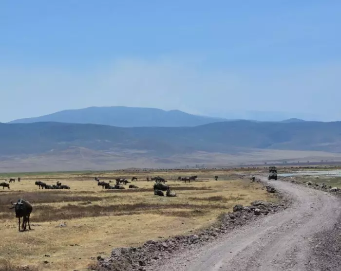 Fra morgenstunden er der afgang på safari i Ngorongoro-krateret, som er verdens største intakte kratergryde (caldera).