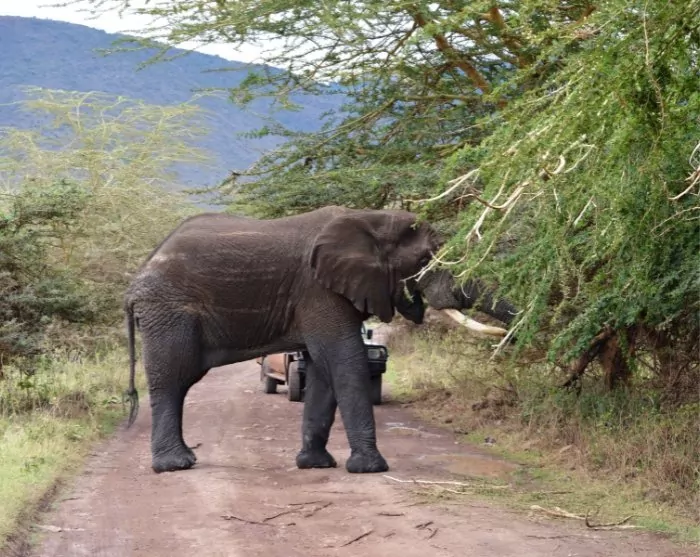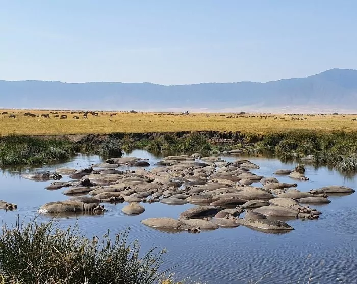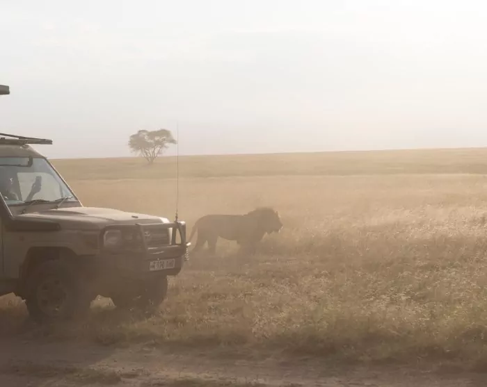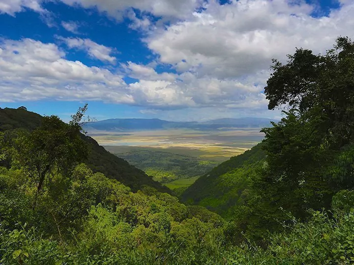 Fra Serengeti kører du mod sydøst i retning af Ngorongoro. Hen på formiddagen kommer du frem til Ngorongoro Conservation Area og kører op ad ydersiden af krateret. Vegetationen ændrer sig nu markant i forhold til Serengetis flade sletter. Når du forlader Serengeti dukker masaierne op – kvinderne vasker tøj i vandhullerne og de unge drenge driver deres kvæg over græsarealerne.