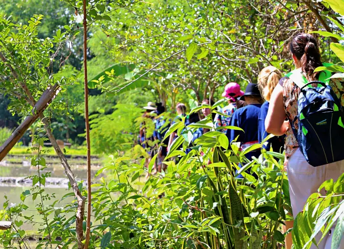 Familien byder dig velkommen og du får en rundvisning i huset og i familiens plantage. Her vokser mange forskellige frugter som bl.a. bananer, mango og kokosnødder, mens haven er fyldt med urter og krydderier til madlavning.