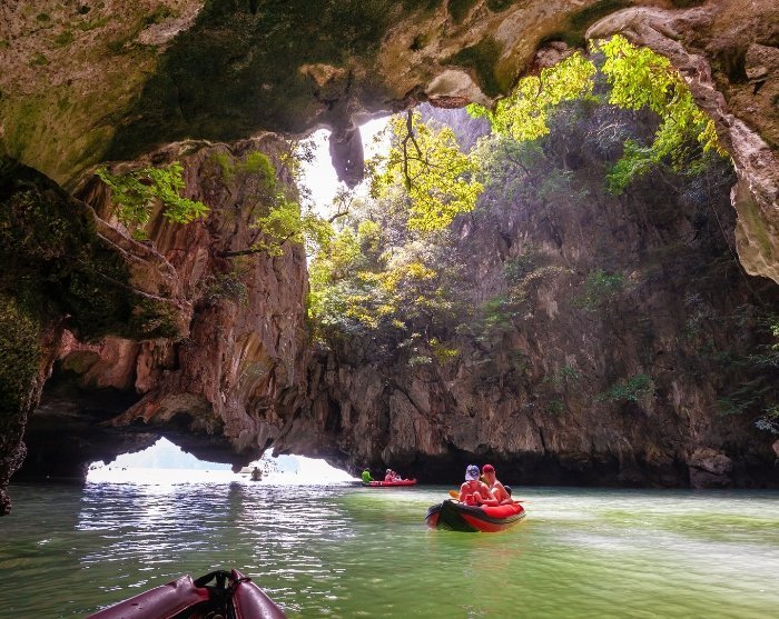 De første to stop på turen finder sted på Phanak Island og Hong Island. Øernes mange klippeformationer og skjulte laguner er ideelle at opleve fra havkajak, da det giver en enestående mulighed for at komme helt tæt på naturen.