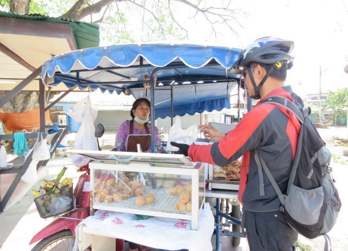 Undervejs kan du være heldig at cykle forbi en gadesælger, hvor du kan købe de populære thailandske desserter: stegte bananer og ”kanom kai hong”, der også kaldes svaneæg og som minder lidt om doughnuts i smagen.