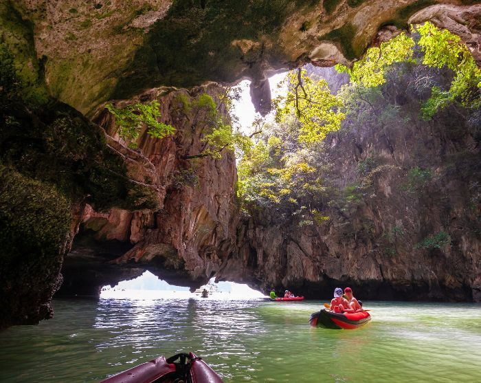 Du bliver hentet på dit hotel og kørt til molen, hvor du stiger ombord på en speedbåd, som sejler dig til nogle af bugtens største seværdigheder. Du gør stop ved øerne Panak og Koh Hong, hvor du har mulighed for at sejle kajak i de billedskønne omgivelser – og du ser naturligvis også Koh Tapu; bedre kendt som James Bond Island kendt fra filmen ”The Man with the Golden Gun”.