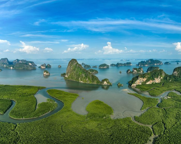 Dagen i dag tilbringes på den smukke bugt, Phang Nga, som ligger mellem Phuket og Thailands fastland. Det er en af de smukkeste bugter i hele Thailand. Kalkstensklipper rejser sig lodret op af det klare, blågrønne vand – nogle steder helt bare andre steder overgroet med buske og træer, som er hjem for både aber, varaner og massevis af fugle.