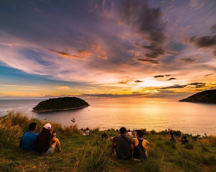 Du bliver hentet på hotellet og aftenen starter ud med en tur til udsigtspunktet Phromthep Cape, hvor du kan nyde den betagende udsigt i lyset af solnedgangens magiske farvespil, mens du nyder en forfriskende drink.