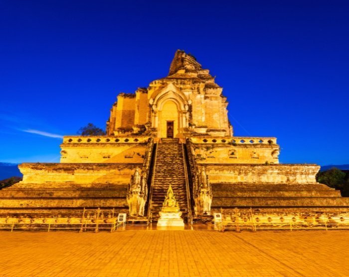 Turen fortsætter gennem Chiang Mais gamle bydel, og du stopper ved den lokale restaurant Heun Phen, hvor du skal smage den berømte, nordthailandske ret, Khao Soi, som er en karryret bestående af nudler, grøntsager og evt. kød. Efter at have fået stillet sulten, går turen videre til det smukt oplyste Wat Chedi Luang, hvor du kan nyde synet af Chiang Mais ikoniske tempel og opbygge appetit igen.