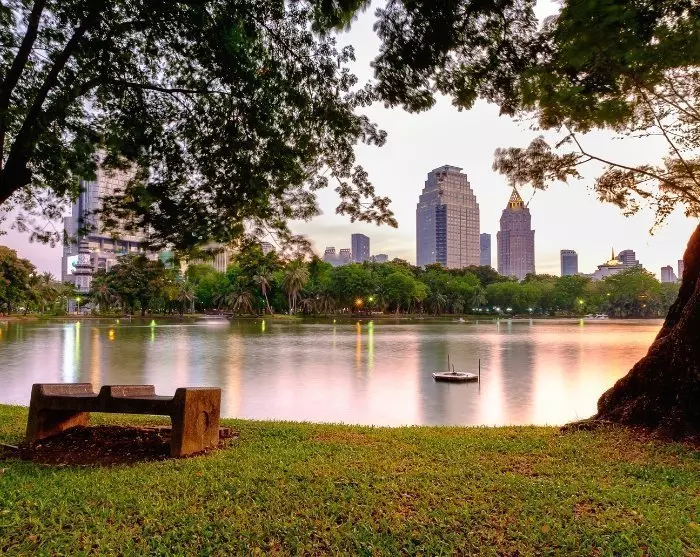 Efter at have vandret Bangkok tynd i den tropiske varme og støjende trafik, vil der sikkert være stunder, hvor du drømmer dig til grønnere og roligere steder. Her kan du passende besøge parkerne Lumpini eller Benjakiti. Du kan også vælge at bevæge dig over på den vestlige side af floden, hvor du vil opleve en helt anden verden uden skyskrabere og dyttende tuktuk’er. Her vil du møde det traditionelle Bangkok og en labyrint af kanaler, hvor huse står på pæle og postbude kommer sejlende.
