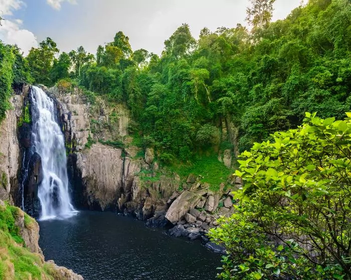 Du vandrer tilbage til startstedet og køres til vandfaldet Haew Narok, som er et af nationalparkens smukkeste. Det består af tre niveauer og har en samlet faldhøjde på omkring 150 meter, hvilket gør det til Khao Yais højeste vandfald. Fra parkeringspladsen ned til vandfaldet er der ca. 1 km, og du går via en natursti og ned ad trapper gennem den frodige skov. Vær opmærksom på, at der kan være meget glat i regnsæsonen, og ruten er ikke for gangbesværede.