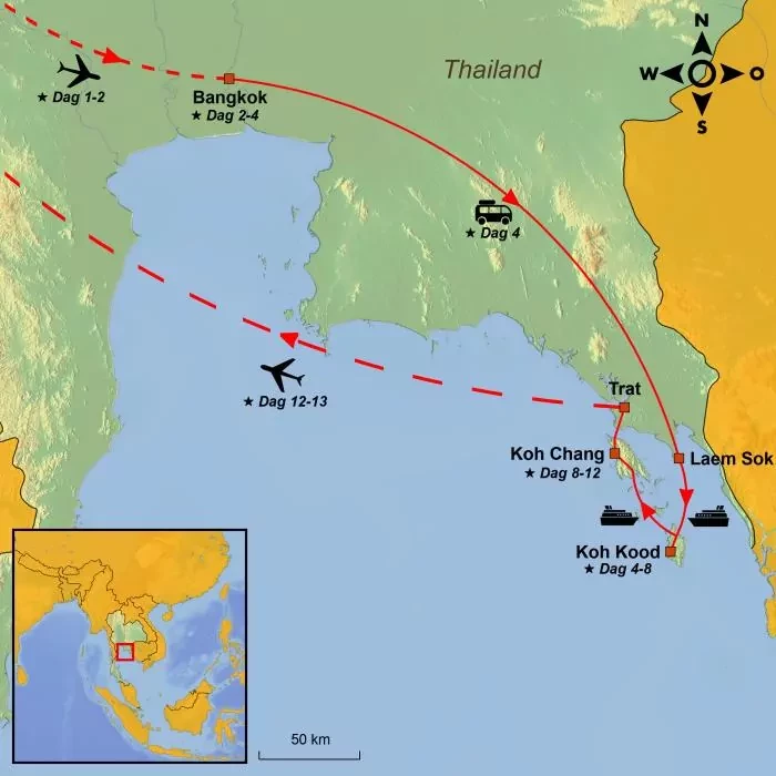 Denne rejse er den perfekte kombination af Bangkoks pulserende storbyliv og afslappende ø-liv på nogle af Thailands smukkeste øer, som ikke er nær så besøgte som de sydthailandske øer.