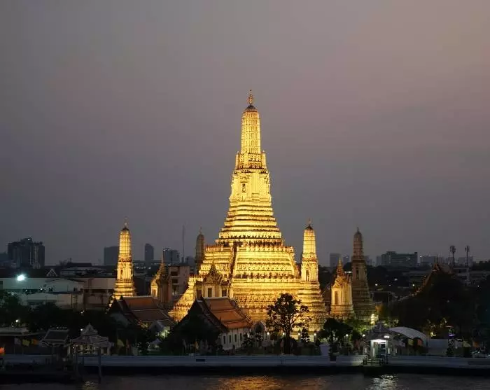 Undervejs får du et glimt af flere af Bangkoks populære vartegn, der er smukt oplyste om aftenen. Du ser bl.a. Demokratiets Monument, der markerer Thailands afskaffelse af absolut monarki og indførelsen af et konstitutionelt monarki. Monumentet ligger ved den travle avenue Ratchadamnoen – ikke langt fra Kongepaladset, Grand Palace.
