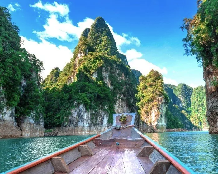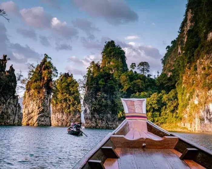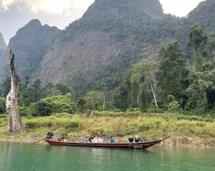 Herefter bliver du kørt til Ratchabrapa-molen tæt ved den imponerende dæmning. Her stiger du ombord i en piskerisbåd og bliver sejlet ud på Cheow Lan-søen, hvor du kan nyde det majestætiske landskab med de ikoniske kalkstensklipper.