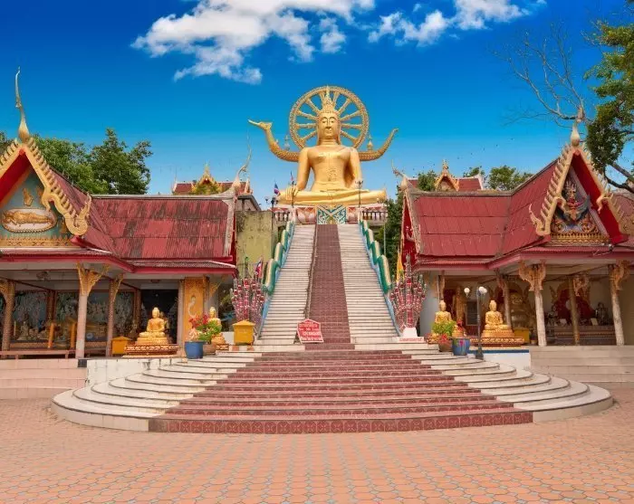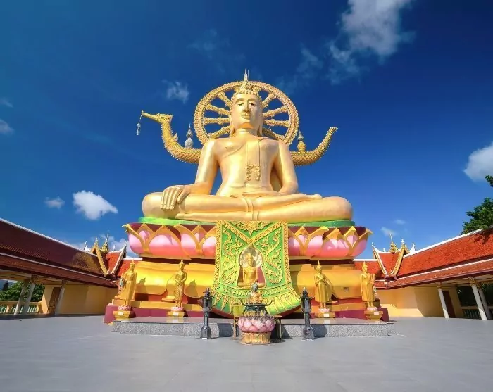 Første besøg er Big Buddha-templet, som er Koh Samuis vartegn. 72 trin fører op til den enorme Buddha-statue, der smukt skyder i vejret og skinner med sit guldbelagte ydre. Heroppe fra er der også en fantastisk udsigt over havet.
