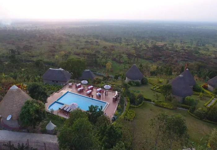 Lodgen består af ”bandas”-hytter, der ligner karakteristiske hytter fra en lille afrikansk landsby. Fra hytterne, der er fordelt på skråningen, og hvoraf en del af dem er opdelt i etager, er der en smuk udsigt ud over sletterne og det traditionelle afrikanske landskab. Hytterne gemmer på 18 moderne værelser indrettet med behagelige senge og privat badeværelse.