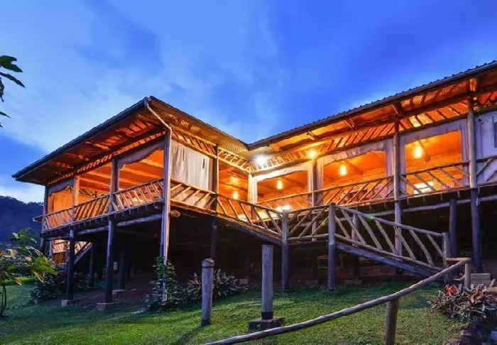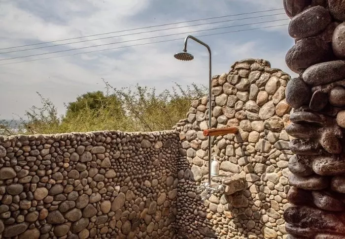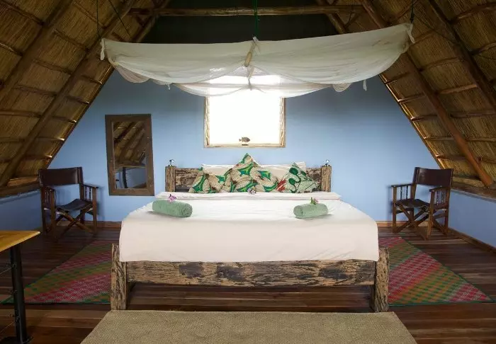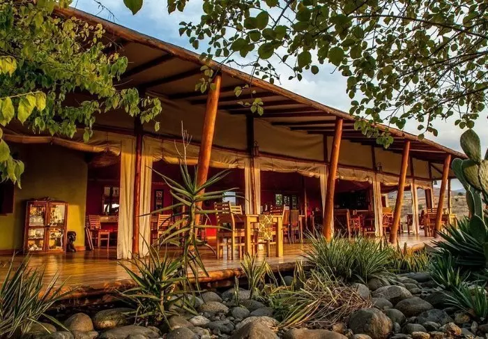 Lodgen består både hytter og telte, som alle er charmerende indrettet og har eget bad/toilet og egen veranda. Der er udelukkende brugt lokale materialer til lodgen og alt er bygget af lokale håndværkere, så indtægterne er kommet de lokale samfund i området til gode.