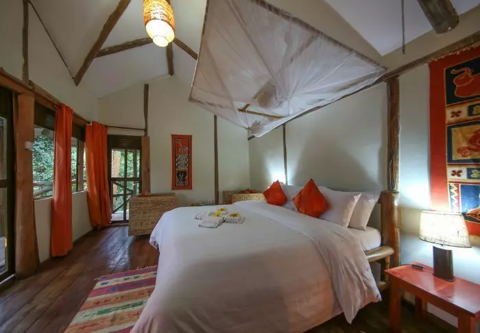 Lodgen består af 16 rummelige hytter, der giver dig de perfekte rammer til at slappe af efter en spændende dag med gorilla-tracking. Alle hytterne har eget badeværelse og privat balkon med en fantastisk udsigt over den uspolerede tropiske regnskov.
