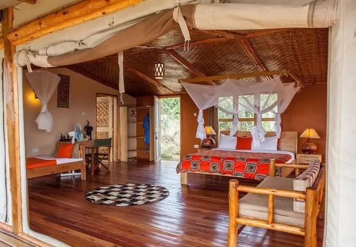 Lodgen sørger for en kombination af komfort og autentiske safarioplevelser. De elegante værelser er smagfuldt indrettet i en østafrikansk stil og tilbyder moderne bekvemmeligheder såsom aircondition, kaffe faciliteter og private badeværelser.