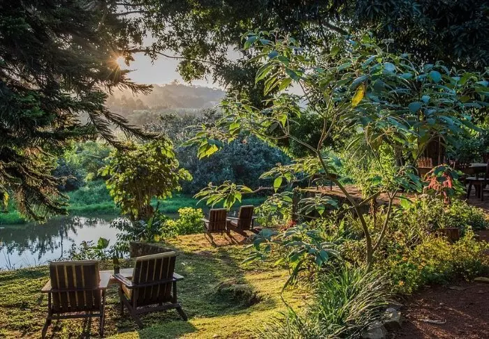Midt i en oase fyldt med tropiske planter ligger Kibale Forest Lodge. Herfra er der kun en kort køretur til nationalparken.