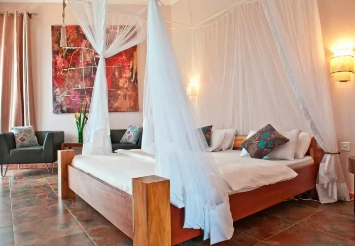 Hotellet består af blot 16 værelser, hvilket er med til at give det en dejligt hjemlig og intim atmosfære. Alle værelserne er smukt indrettet med farverig kunst på væggene, dekorative møbler og elegante myggenet over alle sengene. Hvert værelse har desuden privat badeværelse, TV og wi-fi.