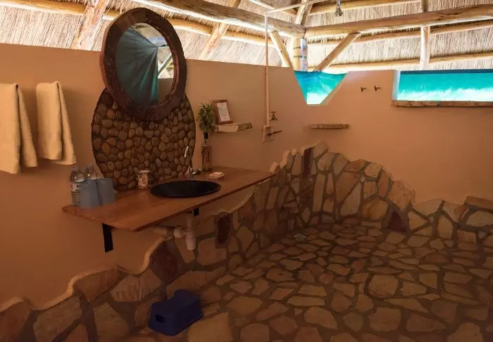 Lodgen består af både stråtækte hytter samt store telte med kanvasvægge. Alle værelser er rustikt men komfortabelt indrettet med eget bad og toilet, værdiboks, myggenet over sengene, solcelle-lys og USB-opladere. Hele lodgen kører på solcelle-energi, så det skal bemærkes, at det ikke er tilladt at bruge eksempelvis hårtørrer.