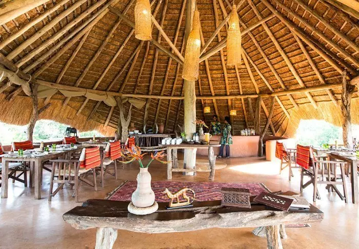 Også i lodgens hyggelige stråtækte restaurant på toppen af bjerget kan du betragte de prægtige dyr ved vandhullet og nyde de storslåede solnedgange over parken, mens du indtager en af de lækre retter lavet af lokale råvarer og afgrøder fra lodgens egen have. En sval brise fra Kachera-søen gør desuden restauranten til det ideelle sted at køle af på en varm dag.