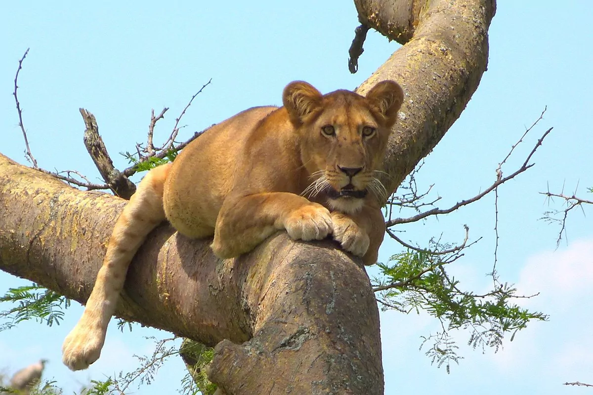 Om eftermiddagen går turen sydover mod Ishasha, som er kendt for sine træklatrende løver. Enten i eftermiddag eller alternativt i morgen formiddag står den på morgen-game drive hvor du blandt andet søger efter de træklatrende løver. Som regel klatrer de op i træerne for at komme væk fra fluer og for at søge skygge fra den bagende sol. Det er som udgangspunkt ikke almindelig adfærd for løver at klatre i træer, men dette forekommer i enkelte nationalparker i Tanzania samt i Uganda.