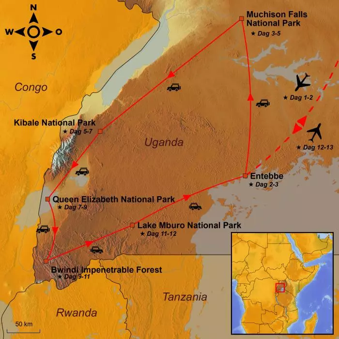 Fra den brusende Nil i Ugandas største nationalpark, Murchison Falls, til de grønne bakker ved Kibale, den gyldne savanne i Queen Elizabeth og regnskoven og de sjældne gorillaer i Bwindi. Denne rejse til Uganda byder på en uforglemmelig kombination af natur, dyreliv og eventyr. Du besøger hele fem af Ugandas fantastiske nationalparker, hvor du kommer til at opleve landets enestående natur og dyreliv på klassiske game drives, vandresafari og besøg i reservater. De fleste tager til Uganda for at se de store primater, chimpanser og gorillaer, men Uganda byder også på mange andre fantastiske dyre- og naturoplevelser. Faktisk er der mulighed for at opleve Big 5 på rejsen, da du besøger Ugandas eneste vildtreservat for næsehorn, Ziwa Rhino Sanctuary. Det er ikke uden grund, at landet har tilnavnet ”Afrikas Perle”! Rejsen egner sig også til familien, og selvom nogle oplevelser, som gorilla- og chimpanse-tracking, ikke er velegnede til yngre børn, er der masser af mulighed for at opleve Ugandas magi gennem mere børnevenlige aktiviteter. I kan sætte jeres eget præg på, hvad rejsen skal indeholde, herunder også tage en rolig dag i jeres eget tempo, hvor I kan lade op til endnu mere eventyr.