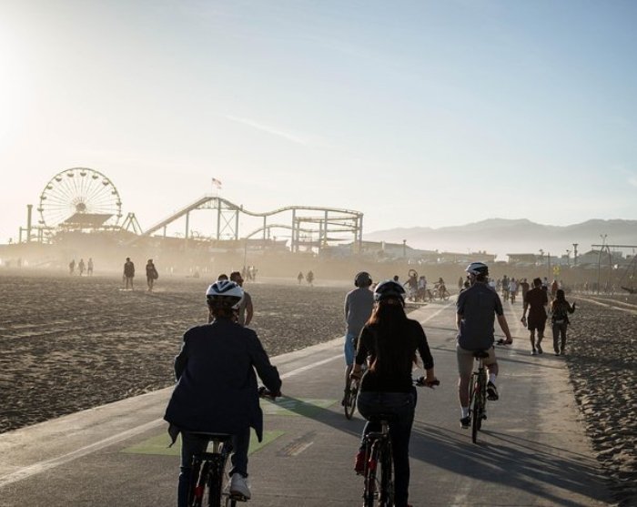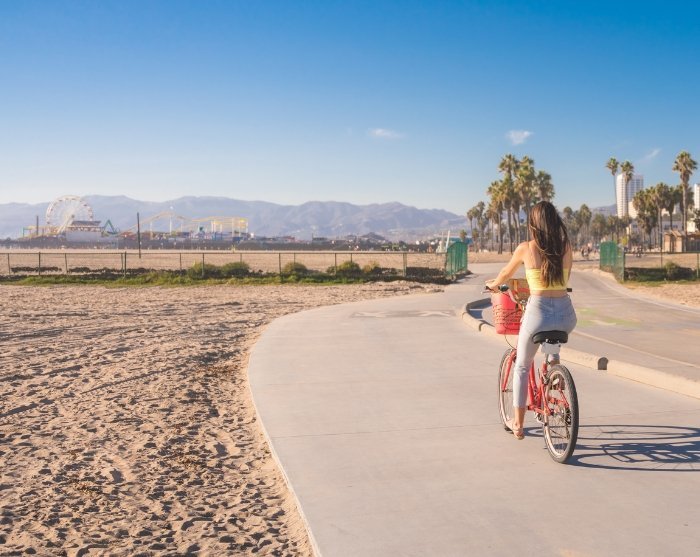 Den californiske kyst er noget ganske særligt, og netop på strækningen mellem Santa Monica og Venice findes en i alt 36 km lange cykelsti. Helt så langt kommer du dog ikke på denne tur, men derimod bliver din en kortere version på cirka 13 kilometer. Sammen med din lokale guide og eventuelle andre deltagere går cykelturen fra Santa Monica stranden til blandt andet de historiske Venedig-kanaler, Marina Del Rey, i området ved Venice Beach.