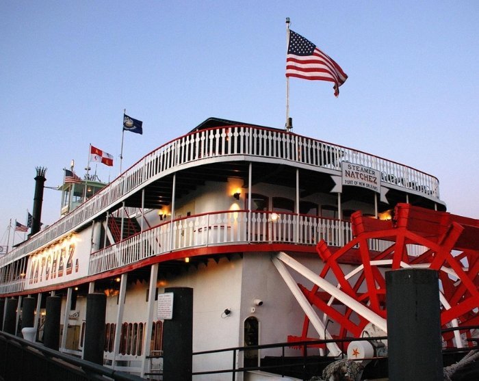 Båden afgår fra det historiske French Quarter, og du skal selv sørge for at ankomme rettidigt til mødestedet. Efter cirka 1 time starter selve sejladsen. Bådens gæster spiser i 2 hold på forskellige tidspunkter: ca. kl. 18 eller kl. 19.45. Mens du nyder din dejlige middag, underholdes du af live jazz fra de Grammy-nominerede ’Dukes of Dixieland’. Når du ikke sidder til bords, kan du oplagt udforske båden og besøge dens imponerende dampmaskinrum eller bare gå ud og nyde den friske luft og smukke udsigt til byens skyline, samt den mægtige Mississippiflod.