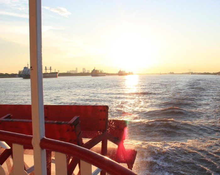 Oplev en fortryllende aften i New Orleans med jazzcruise på Mississippifloden. Her tages du med på en af de ikoniske hjuldampere, hvor du kan nyde en aften fyldt med musik, mad og spektakulære udsigter.