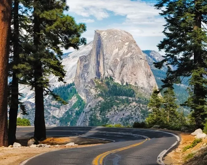 Overvej også at tage bilen til et af de smukkeste udsigtspunkter i parken, Tunnel View, hvorfra du har udsyn til Yosemite-dalen, Bridalveil Falls og de kendte bjerge El Capitan og Half Dome.