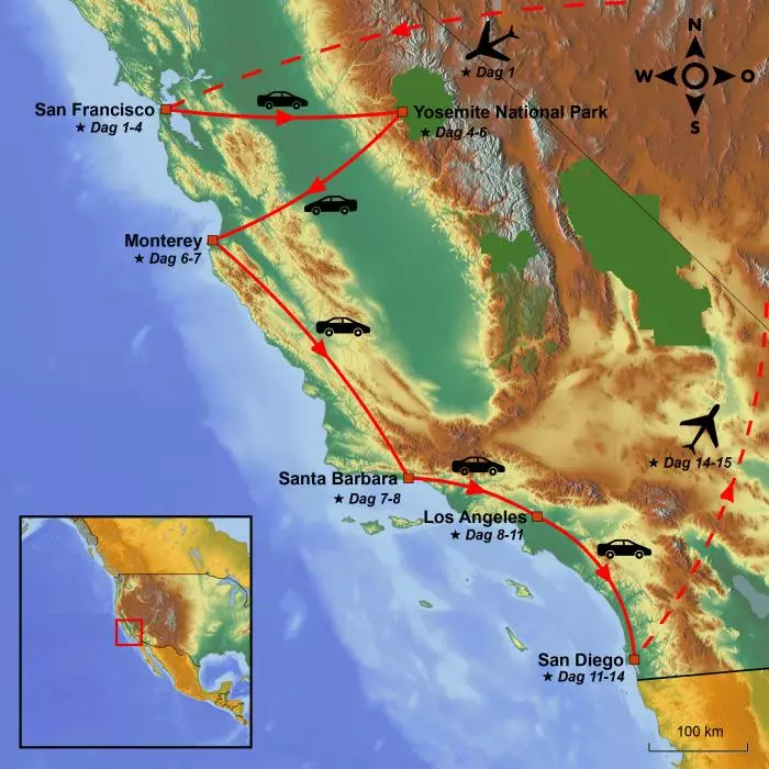 Opdag Californiens største perler af storbyer og natur fra nord til syd: San Francisco, Yosemite, Highway 1, Los Angeles og afslut i strandbyen San Diego.