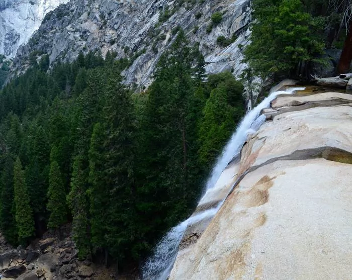 På den sidste del af vejen ind til Yosemite-dalen, følger du den brusende Merced River samtidig med, at du har udsigt til de store gletsjerskabte bjerge, vandfald og enge.