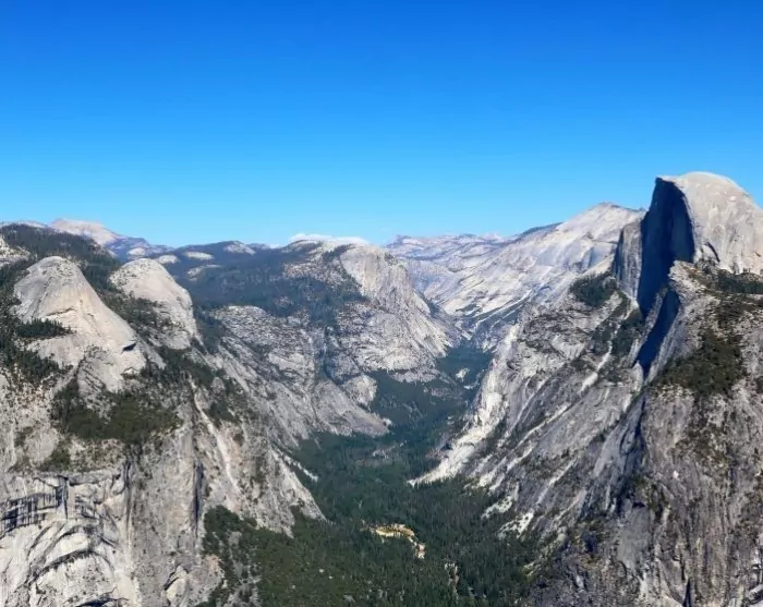 I sommermånederne, når sneen er smeltet, er Glacier Point et udsigtspunkt i ca. 2200 meters højde, du absolut ikke må gå glip af. Du kan både køre herop i bil, og du kan også booke en bustur hertil (bookes direkte i parken efter først-til-mølle-princip eller via telefonisk forudbestilling, som du kan læse nærmere om her). Har du lyst til at vandre fra Glacier Point, kan du tage bussen op og vandre ned ad Four Mile Trail.