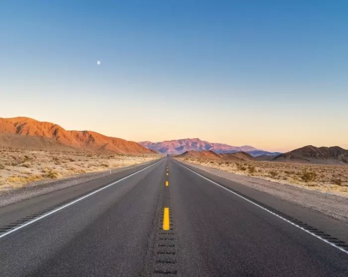 Kontrasten er slående, når du i dag forlader Californiens kystområde til fordel for Mojaveørkenen og spillebyen Las Vegas, der ligger i delstaten Nevada. Fra storbyens skyskrabere til småbyer, sandbanker og vindhekse, der ruller stille over vejen.