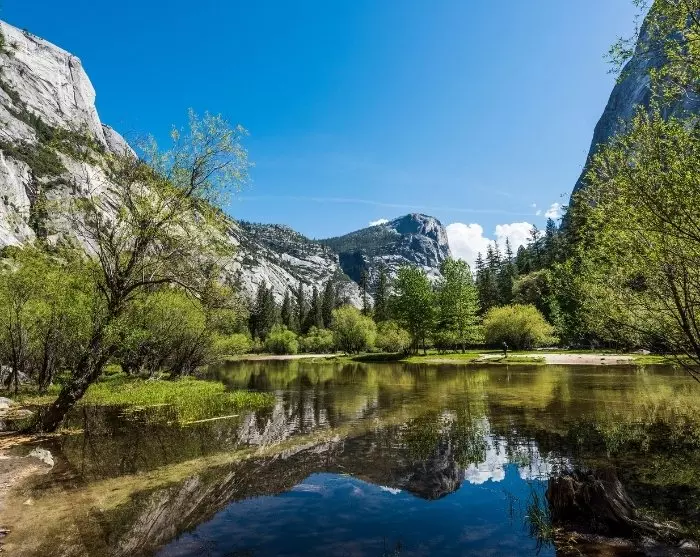 I parken bliver du mødt af spektakulære vandfald, der vælter frem fra de dramatiske klippevægge. Her i Yosemite findes noget for enhver sværhedsgrad og alder, og du behøver ikke gå langt for at se de populære naturoplevelser. Et oplagt sted at starte er ved vandfaldet, Lower Yosemite Fall som er nemt at komme til – eller søen, Mirror Lake, der spejler de omkringliggende bjerge i vandets overflade. Du kan med fordel lade dig vejlede om passende ruter i Welcome Center.