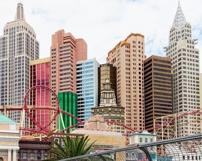 På Hotel New York- New York kan du bl.a. slentre rundt i den indendørs kulisse af NYC-bydelen Greenwich Village, og du kan prøve en tur i hotellets rutschebane. Eller besøg hotel Paris, der imponerer med sin 160 meter høje kopi af Eiffeltårnet. På hotellet The Venetian kan du sejle gennem hotellet i en gondol, mens din gondolier synger for dig.