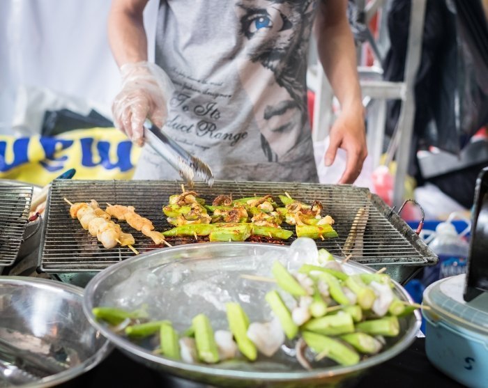 Du ankommer til et lokalt, historisk spisested, der er kendt for deres gode desserter. Prøv evt. en suppe eller grillet banan pakket ind i sticky rice toppet med kokosmælk.