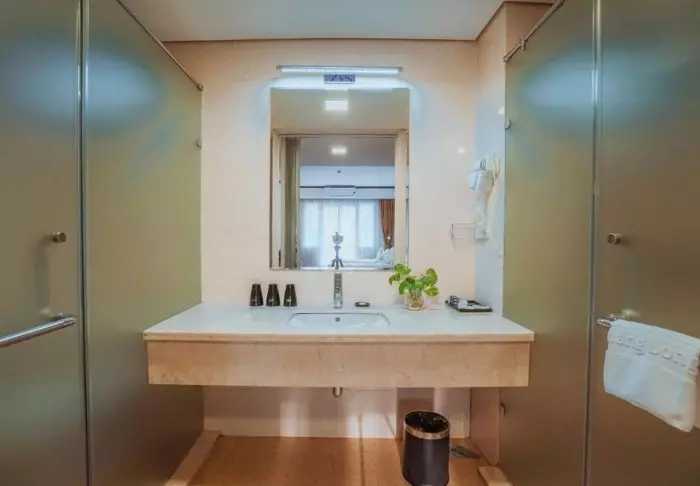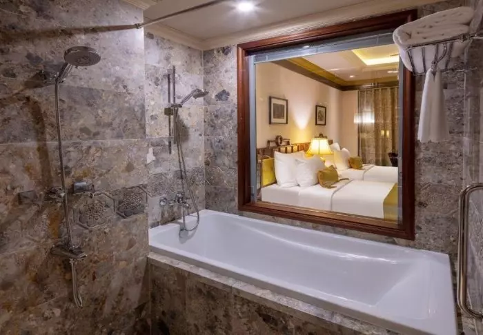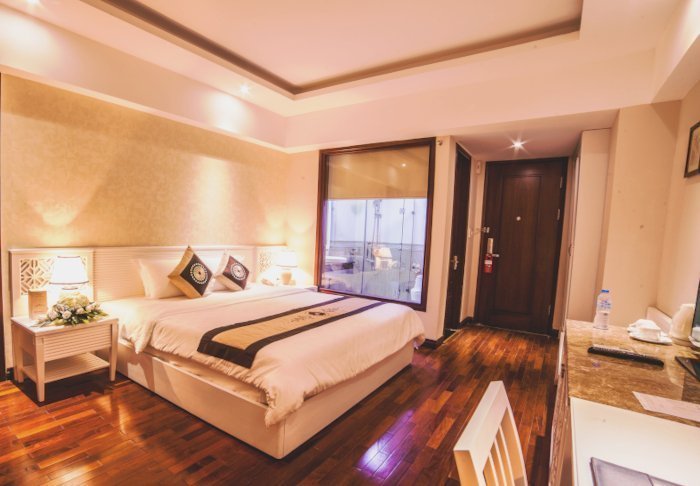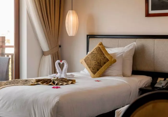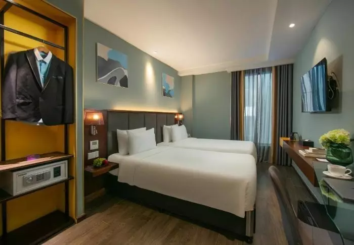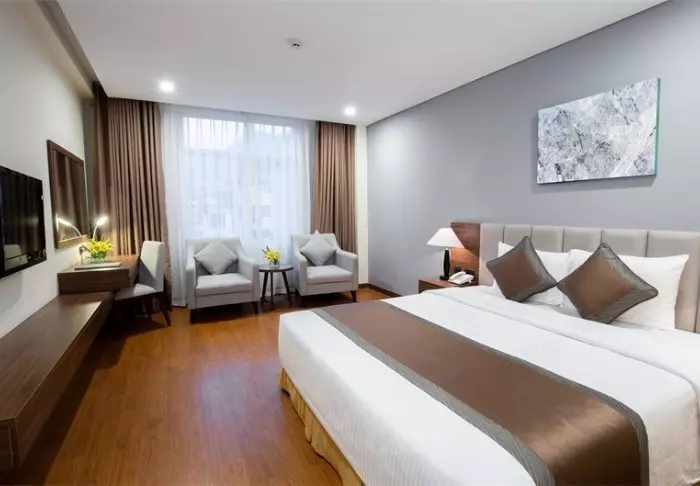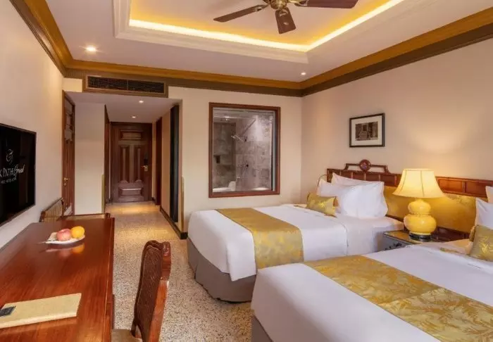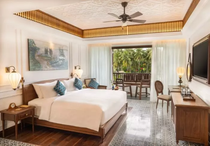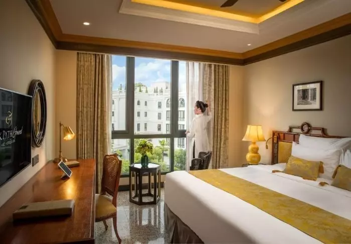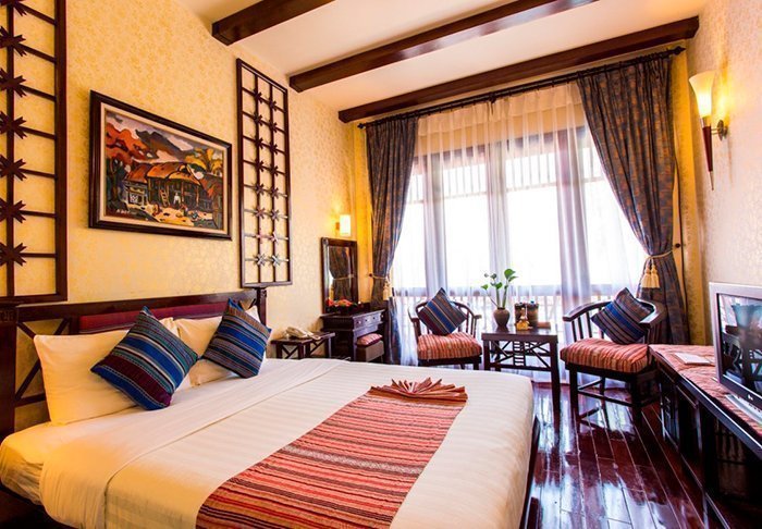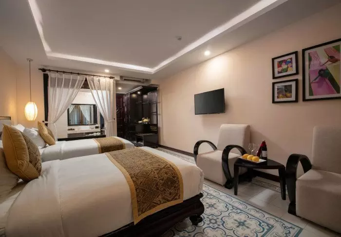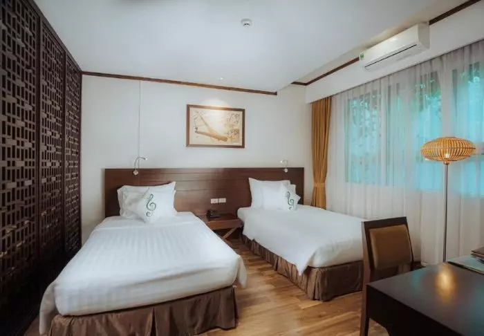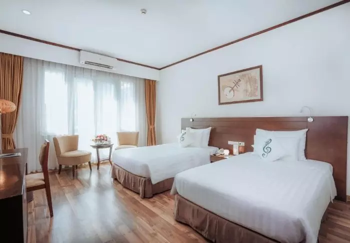 Du bor som udgangspunkt i et superior-værelse, der kombinerer moderne komfort med et strejf af vietnamesisk elegance. Værelserne er indrettet med store vinduer, der lukker dagslyset ind, samt trædetaljer og klassiske møbler, som skaber en varm og indbydende atmosfære. Særligt bemærkelsesværdige er vægpanelerne med blomstrende kirsebærgrene, der tilfører et lokalt og kunstnerisk udtryk. Alle værelser er udstyret med en dobbeltseng eller to enkeltsenge, køleskab, tv, værdiboks, elkedel, aircondition og eget badeværelse med toiletartikler og hårtørrer. De gennemtænkte detaljer giver en rolig base, hvor du nemt kan slappe af efter dagens oplevelser.