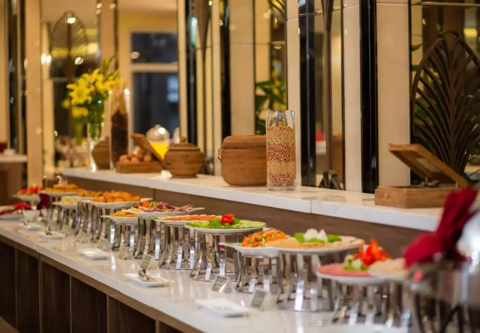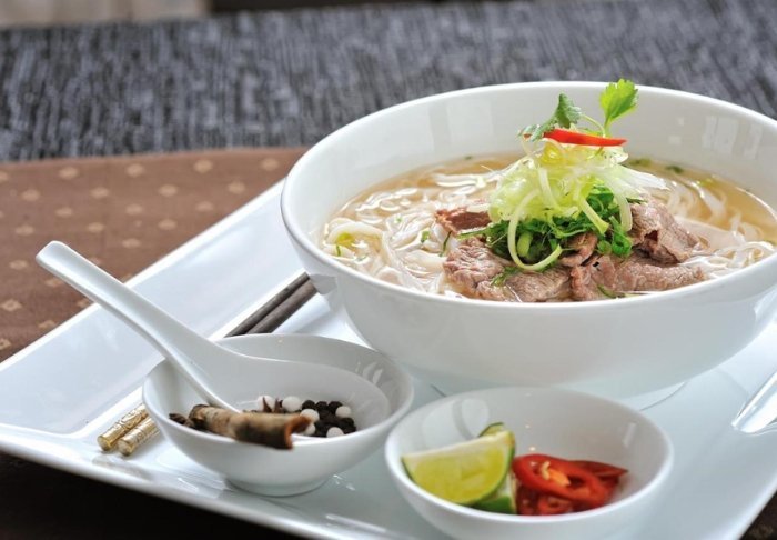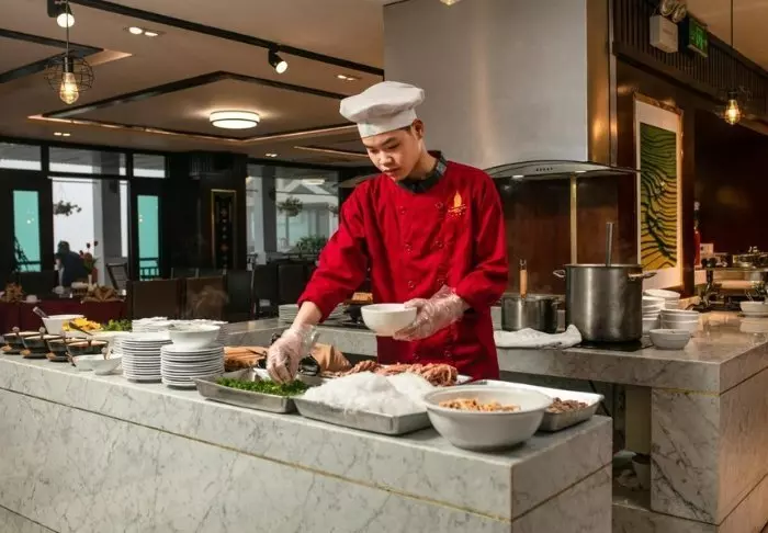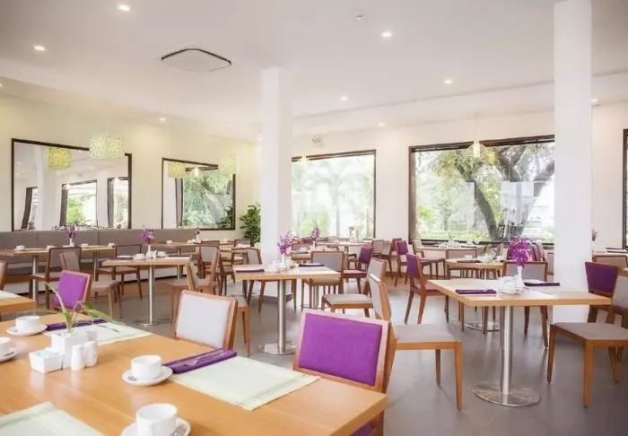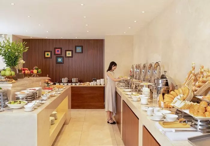 Restauranten serverer både vietnamesiske specialiteter og internationale retter, og i lobbybaren kan du runde dagen af med en drink eller en snack i afslappede omgivelser.