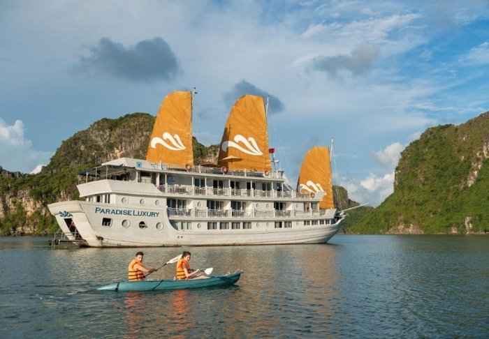 På det 5-stjernede skib, Paradise Sails, får du mulighed for at opleve Ha Long Bays magiske natur på første parket.