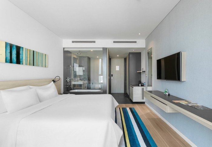 Green Bay Phu Quoc Resort & Spa ligger lige ned til en af Phu Quocs bedste strande på den vestlige side af øen. Resortet ligger i naturskønne omgivelser med masser af grøn bevoksning, haver, køkkenhaver, en dam, palmer, skyggefulde træer og panoramaudsigt over Thailandbugten.