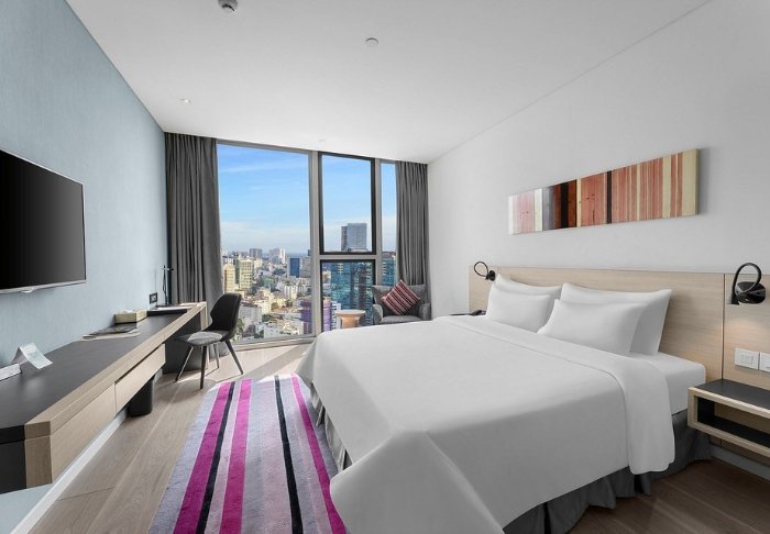 Selvom du befinder dig i storbyens pulserende centrum, skaber hotellets urban stil med rene linjer og lyse nuancer en rolig atmosfære, og er derfor et passende tilflugtssted efter en begivenhedsrig dag på farten.