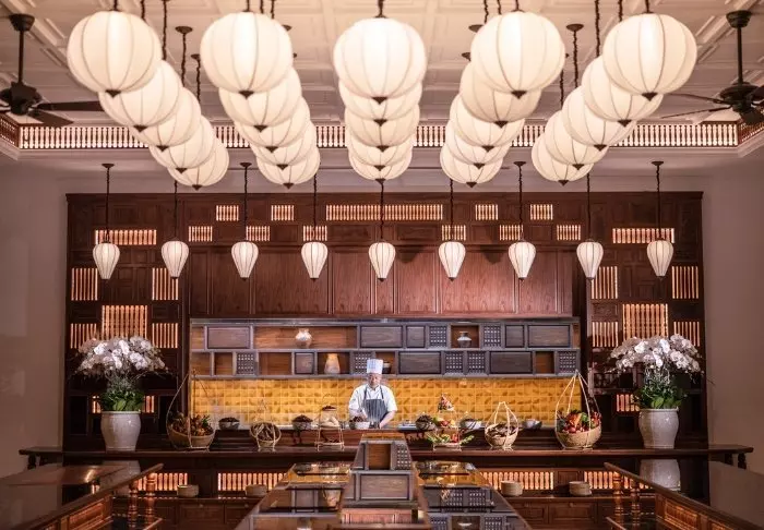 Restauranten, Le Comptoir de Marthe et Edouard, er opkaldt efter ejerens bedsteforældre og forener det bedste fra det vietnamesiske og franske køkken. Her står Chef Vo Quoc Thach bag menuen, hvor lokale råvarer møder klassiske franske teknikker. Du kan nyde retterne på terrassen med udsigt til floden, mens solen går ned.