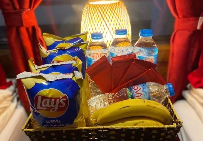 I sovekupéen findes en lille velkomstpakke med lidt frugt, snacks og vand. Vi anbefaler dog, at du køber supplerende mad og drikkevarer til turen, inden du stiger ombord.