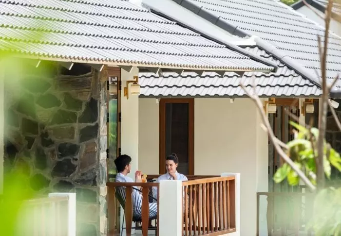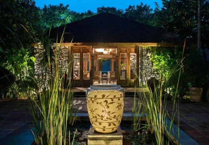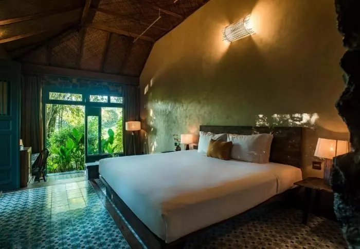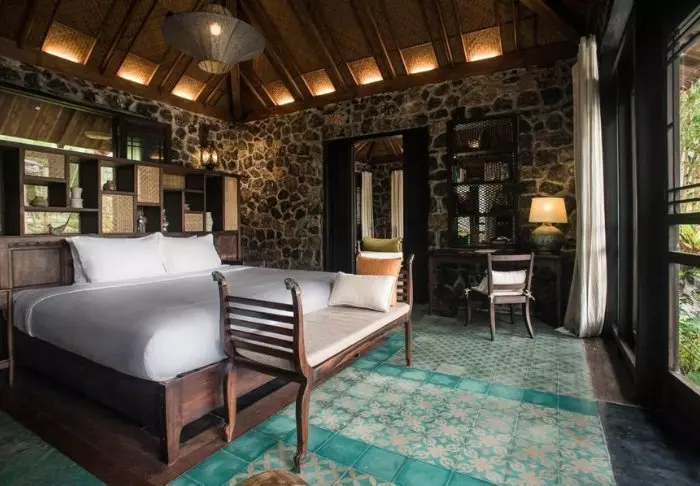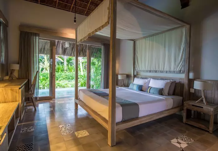 Hver af resortets 19 bungalows er opdelt i to luksuriøse og rummelige værelser, hvert med eget badeværelse og terrasse med udsigt over haven. Værelserne er smagfuldt indrettet med lokale træsorter, sten, keramik og fliser med traditionelle mønstre for at give dem en raffineret charme.