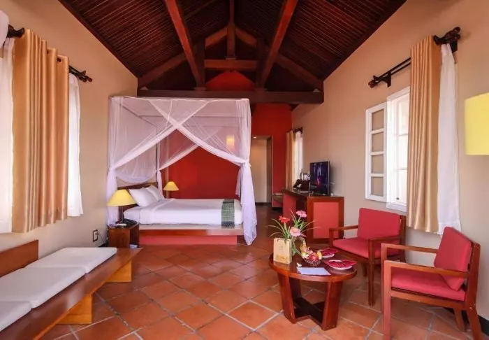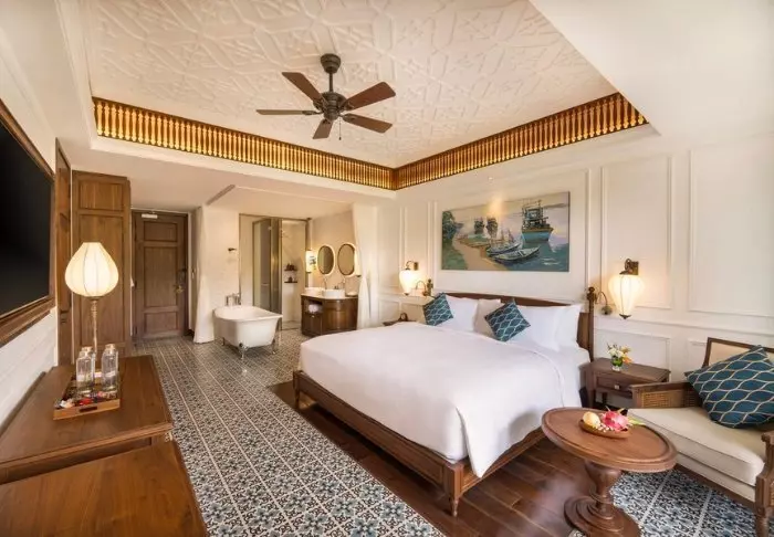 Du bor som udgangspunkt i et superior værelse, som er indrettet i vietnamesisk stil med mørke træmøbler, der skaber en varm og indbydende atmosfære. Værelserne er udstyret med moderne bekvemmeligheder såsom aircondition, wi-fi, minibar, kaffe- og tefaciliteter, værdiboks og fladskærms-tv, så du har alt, hvad du behøver for et komfortabelt ophold. Badeværelset har bruser, badekåbe, hårtørrer og toiletartikler.