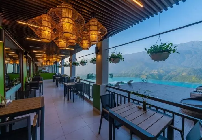 I hotellets restaurant sørger de dygtige kokke for, at der altid er et stort udvalg af lærke retter, som er tilberedt med lokale råvarer. Her bliver serveret både asiatiske og vestlige retter til udsigten over Sapas bølgende bjerge.