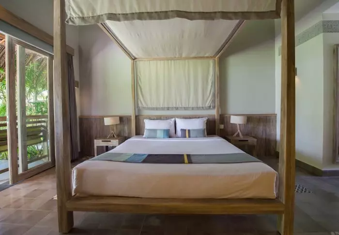 Du bor som standard i en Garden View Bungalow, hvor værelset er enkelt indrettet med alt, hvad du behøver under opholdet. Her er enten dobbeltseng eller to enkeltsenge med myggenet, og værelset er udstyret med aircondition, minibar, Wi-Fi, værdiboks samt badeværelse med bruser og toiletartikler. Fra den private terrasse har du udsigt til de grønne omgivelser, så naturen altid føles tæt på.