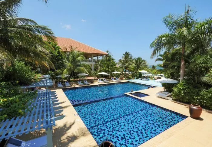 La Veranda Resort ligger ved stranden Long Beach på det vestlige Phu Quoc. I nærheden kan du finde restauranter og strandbarer. Natmarkedet i Doung Dong ligger 10 minutter væk i taxa.